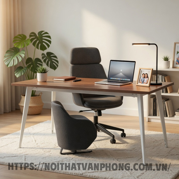 Kiểu dáng bàn cũng cần phù hợp với phong cách tổng thể của căn phòng. Nếu phòng của bạn theo phong cách Scandinavian hoặc Japanese minimalist, hãy chọn bàn có thiết kế đơn giản, gọn gàng, không quá nhiều chi tiết thừa. Nếu phòng có phong cách industrial hoặc loft, bàn có chân sắt thô kết hợp mặt gỗ màu tối sẽ rất ăn nhập. Sự hài hòa giữa bàn làm việc và không gian sống xung quanh giúp bạn cảm thấy thoải mái và truyền cảm hứng mỗi khi ngồi làm việc.