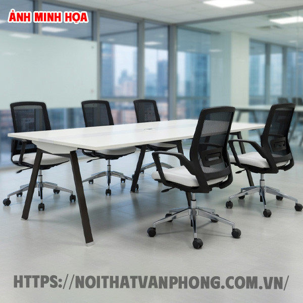 Màu trắng đóng vai trò như một tờ giấy trắng trong nghệ thuật, cho phép mọi yếu tố xung quanh tự do thể hiện cá tính mà không bị xung đột. Bàn phòng họp màu trắng kết hợp hài hòa với ghế màu đen tạo ra sự tương phản cổ điển và sang trọng. Kết hợp với ghế màu xanh navy mang lại cảm giác chuyên nghiệp và tin cậy. Kết hợp với ghế màu xanh lá hoặc cam nhẹ tạo ra không khí sáng tạo và năng động.